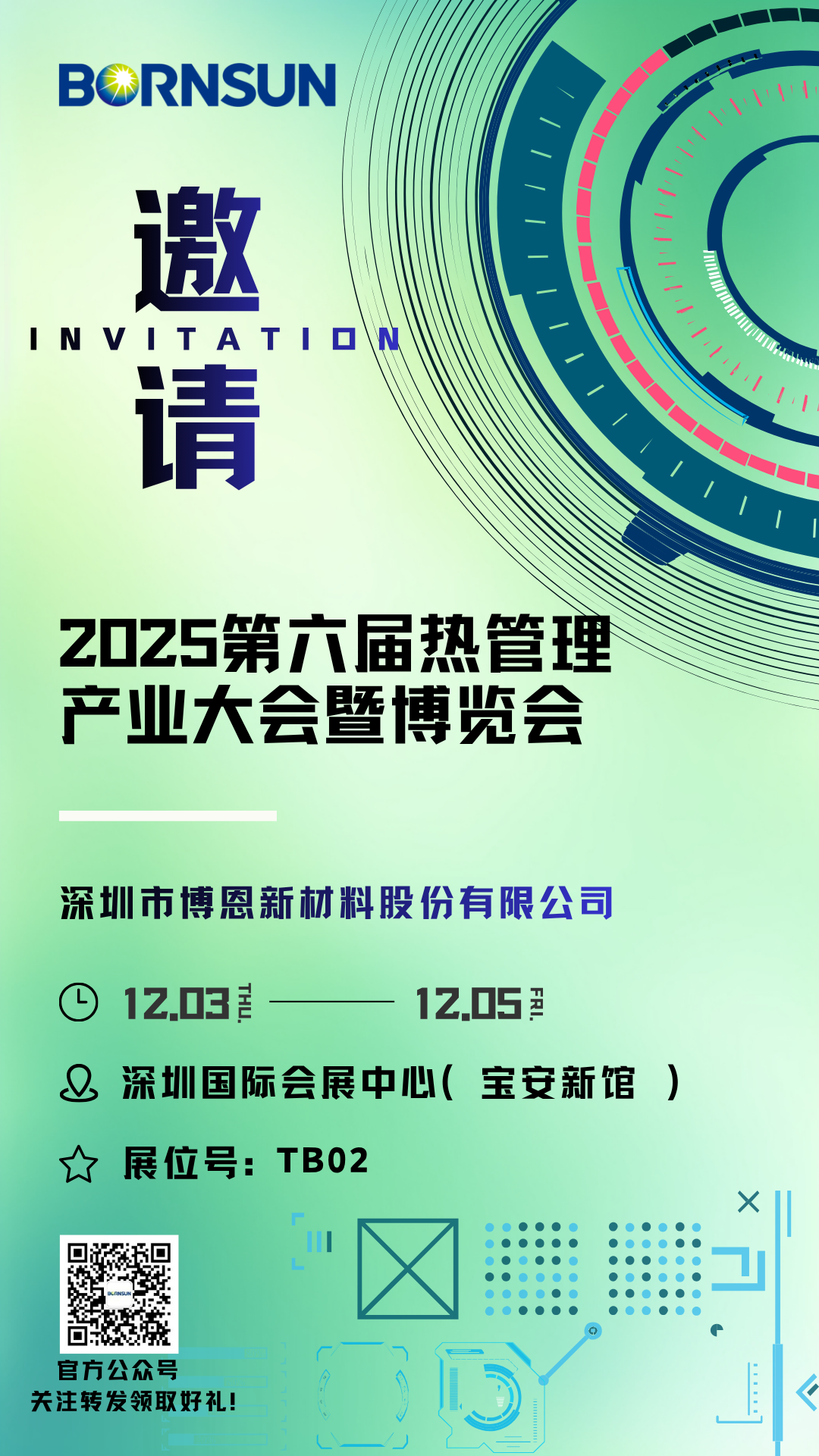 尊敬的先生/女士,深圳市博恩新材料有限公司将作为参展商参与于2025年12月3日~5日在深圳举办的第六届深圳热管理产业大会暨博览会。